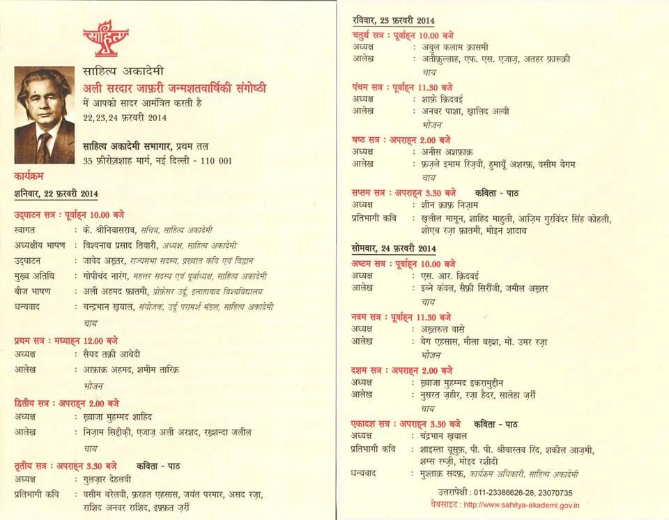 ಸಾಹಿತ್ಯ ಅಕಾಡೆಮಿ- ಸರ್ದಾರ್ ಜಾಫ಼್ರಿ ಶತಮಾನೋತ್ಸವ