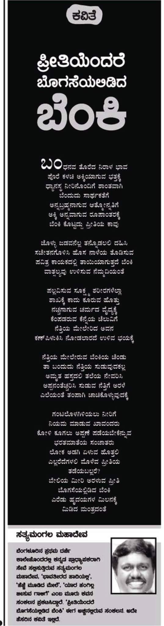 ಸತ್ಯಮಂಗಲ ಮಹಾದೇವ- ಪ್ರೀತಿಯೆಂದರೆ ಬೊಗಸೆಯಲಿಡಿದ ಬೆಂಕಿ