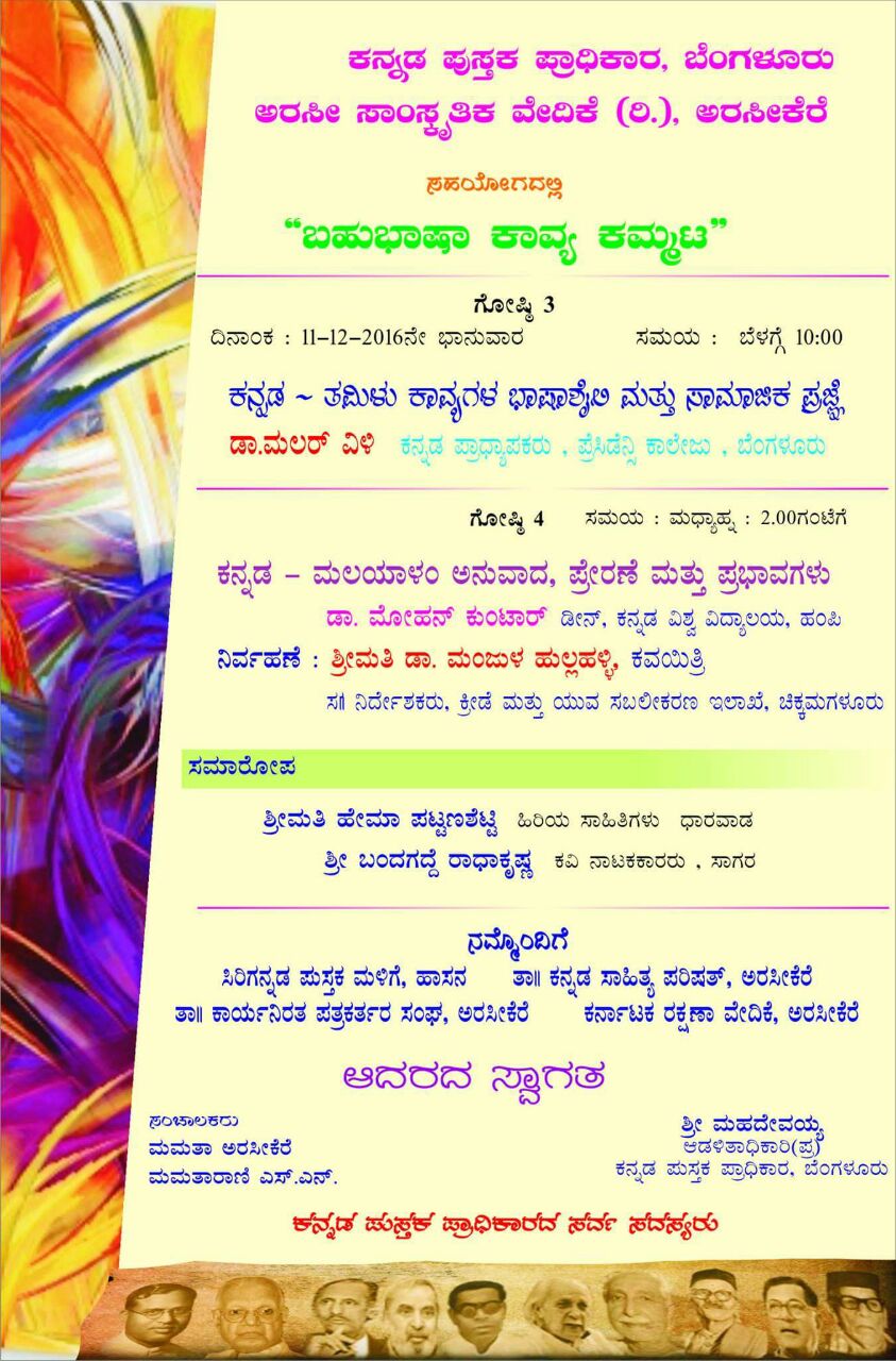 ಅರಸೀಕೆರೆಯಲ್ಲಿ ಬಹುಭಾಷಾ ಕಾವ್ಯ ಕಮ್ಮಟ --11-12 --2016